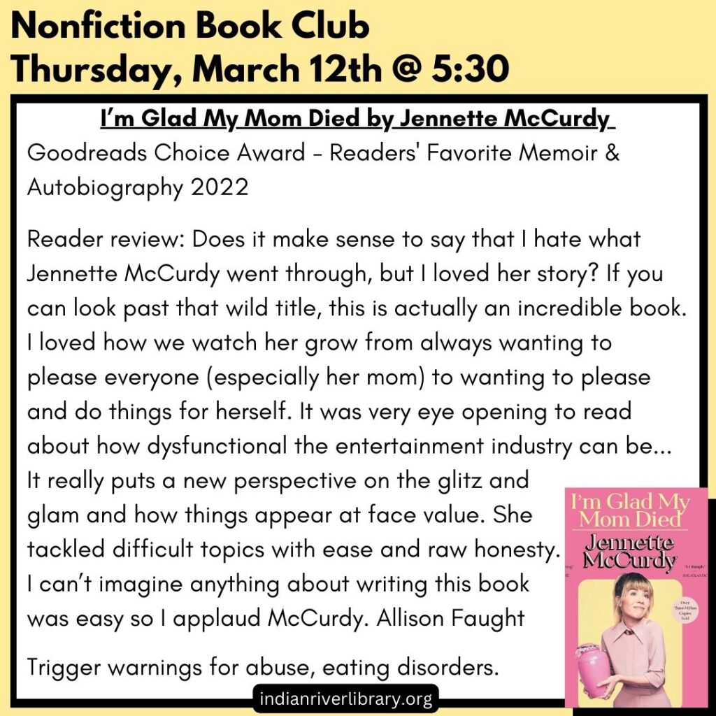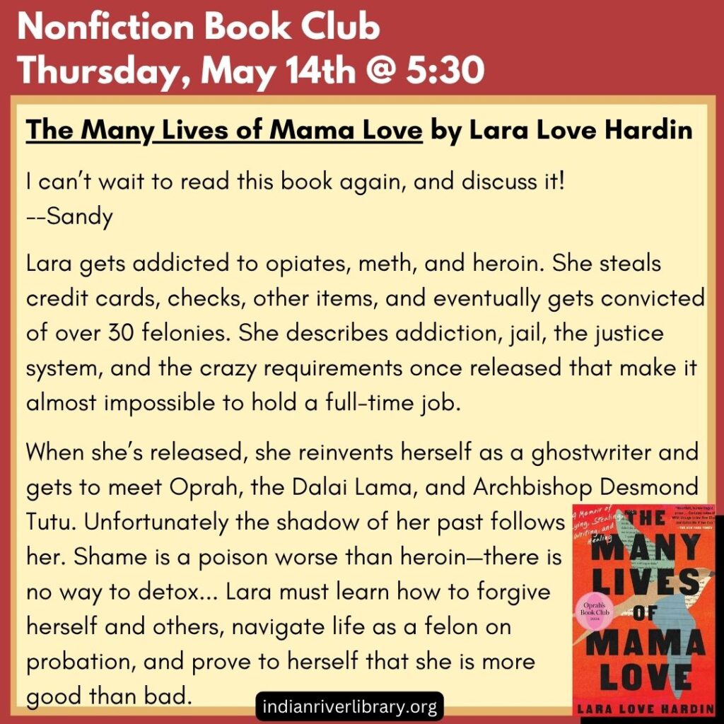Books are available to pick up at the Library for each book club.