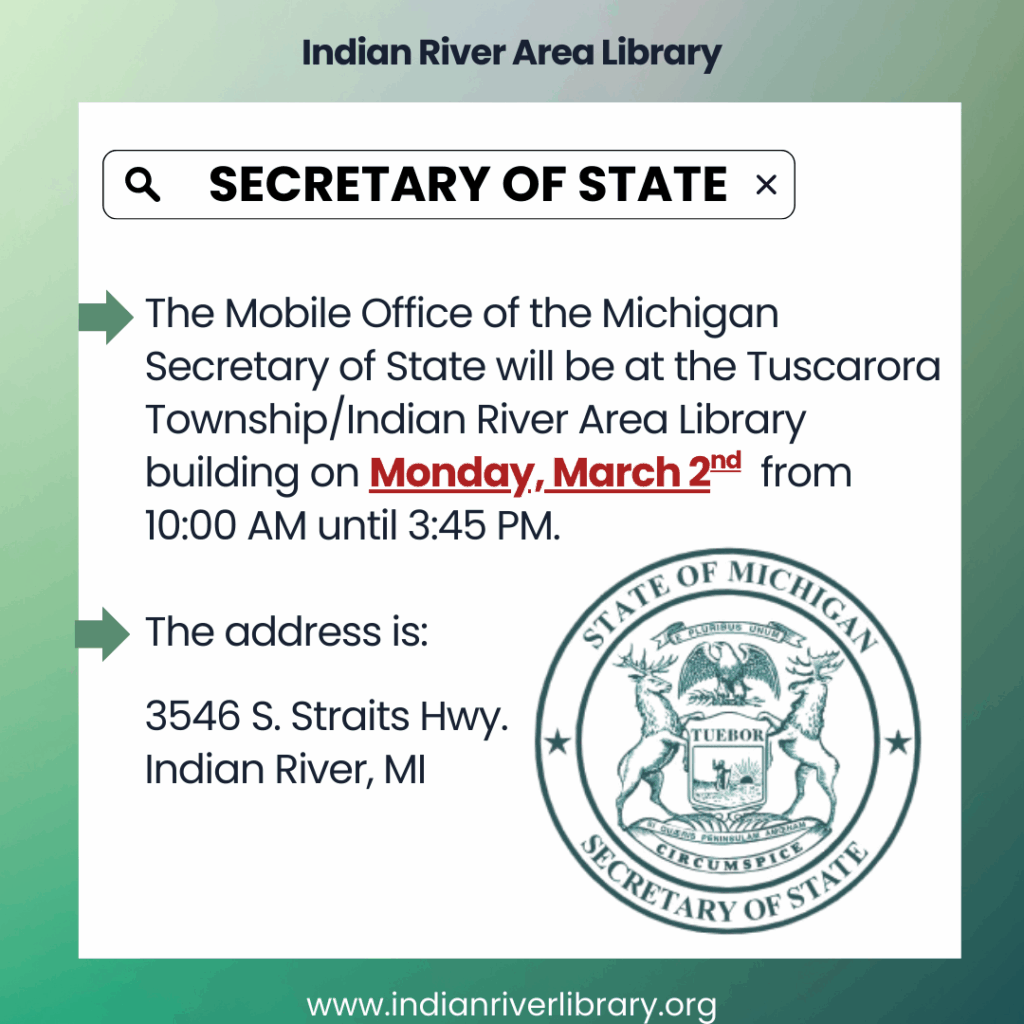 3546 S. Straits Hwy, Indian River, MI 49749 ……………………………………………… 231-238-8581